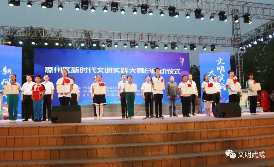 启动仪式上,宣读了《关于命名第二届凉州区文明校园的决定》和《关于命名2019年下半年、2020年上半年全区“新时代好少年”的决定》,并为“文明校园”代表和“新时代好少年”代表颁奖。