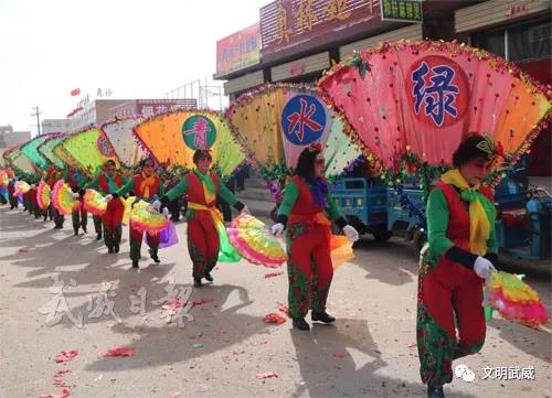 3月1日,正月十四,古浪县土门镇人山人海,热闹非凡。为喜庆元宵佳节,土门镇各村社火队齐聚,各展风采,为群众呈现了精彩的高跷、舞狮、旱船、秧歌等社火表演,吸引了广大群众前来观赏。社火表演在服装、道具的创意运用上着重突出了党的十九大精神的宣传,通俗易懂,使群众一目了然、熟记于心。参演人员精神饱满,脸上挂着灿烂的笑容,脚底踩着欢快的鼓点,尽情地舞动着手帕和彩扇,用力地挥打着锣鼓,不时与群众们互动,营造出浓厚的节日气氛,充分展示了人民群众蓬勃向上的良好精神风貌。土门社火,形式独特、阵容庞大、装扮古朴典雅,深受广大群众喜爱。 社火表演喜气洋洋 土门高跷独具特色