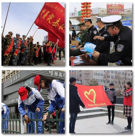 2018年是毛泽东等老一辈革命家为雷锋同志题词55周年,为了进一步学习和弘扬雷锋精神,倡导时代新风正气,引导广大群众培育和践行社会主义核心价值观,为创建全国文明城市凝聚智慧和力量,营造浓厚工作氛围,3月5日下午,武威军分区政工处、团市委、市文明办、市教育局、市残联及市区相关单位在文化广场举办了以“传承雷锋精神  创建文明城市”为主题的市区青年志愿者服务月活动启动仪式。