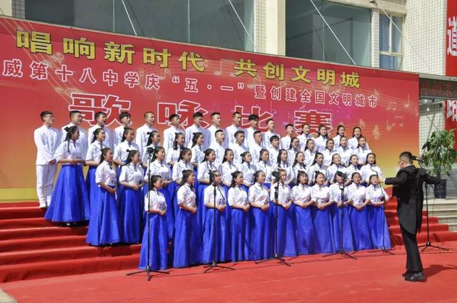 为激发全校师生爱党、爱国、爱校情怀,丰富校园文化生活。为我市创建全国文明城市营造良好的氛围,4月27日武威十八中举办以“唱响新时代 共创文明城”为主题的庆“五一”暨创建全国文明城市歌咏比赛。