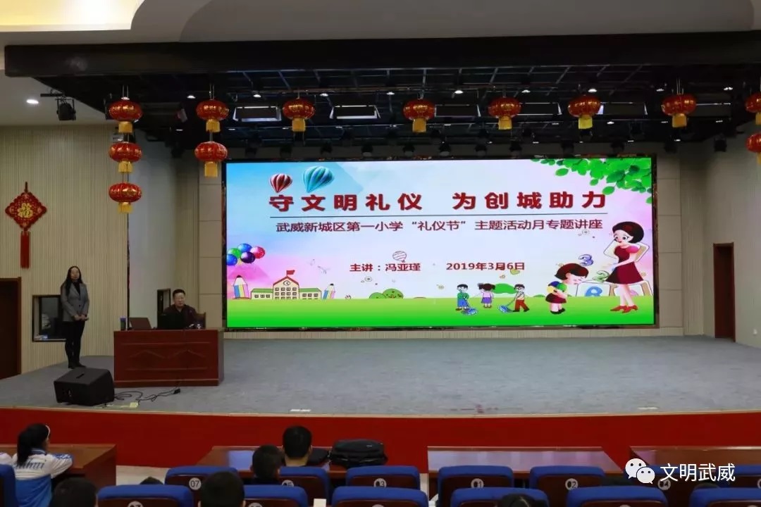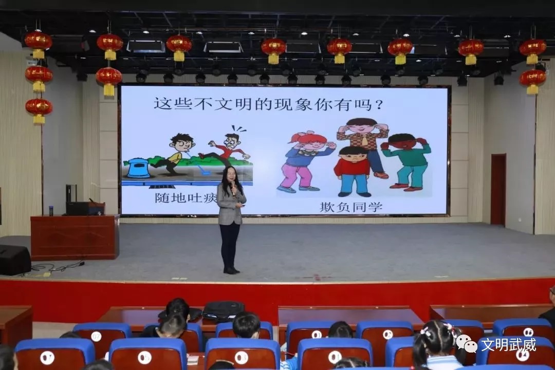 活动中,凉州区教育局教研室副主任、中专高级讲师冯亚瑾以“守文明礼仪,为创城助力”为主题,以自己独特的语言魅力和丰富的讲授经验,运用大量生动的图片、风趣的事例,声情并茂地从礼仪的来历、仪表、着装、举止、相处等方面诠释了礼仪在小学生参与集体和社会生活中的重要性,并亲自示范了不同场合中的规范站姿坐姿、握手送别、待人接物等细节,还与孩子们进行了亲切友好的互动交流,为大家奉上了一堂精彩实用的礼仪知识课。