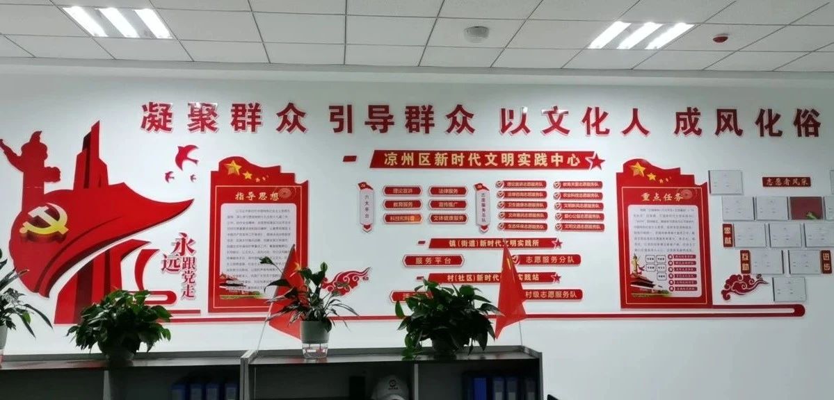 区委高度重视新时代文明实践中心建设工作,成立由区委书记和区长任双组长的领导小组,区委常委会会议及时传达学习中央和省市有关会议精神,专题研究部署全区试点工作,结合实际制定实施方案,明确各级各部门工作职责,形成统一调度、分工负责、合力推进的工作格局,着力打造新时代文明实践中心“365N”凉州模式。2020年7月1日,凉州区新时代文明实践中心挂牌成立。