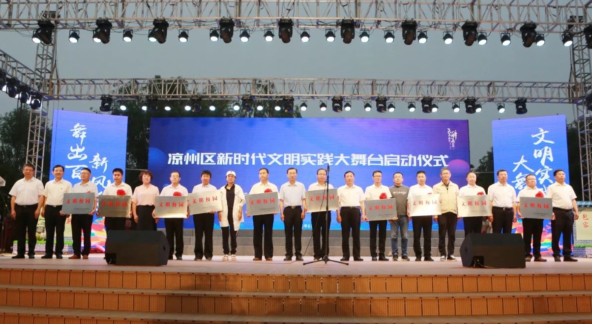 立足凉州文化深厚底蕴,结合“中华诗词之乡”创建,大力传承乡贤文化、发展地域特色文化,深化拓展新时代文明实践活动,让群众在多姿多彩、喜闻乐见的文化活动中获得精神滋养、增强精神力量。今年7月,将凉州植物园广场舞台命名为“凉州区新时代文明实践大舞台”,将天马湖公园下沉式广场命名为“凉州区新时代文明实践大广场”,并组织开展主题展演活动,提振群众精气神。