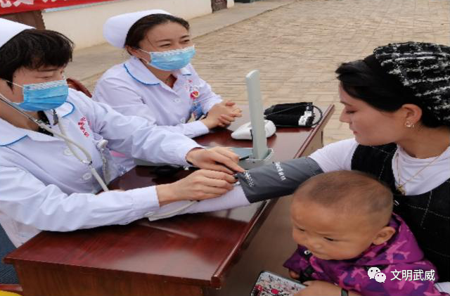 古浪县中医医院的护士为群众测量血压