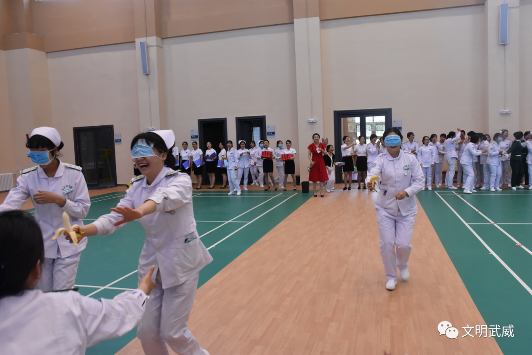 武威肿瘤医院开展了文艺汇演活动。时装走秀、舞蹈、诗歌朗诵、歌伴舞,形式多样的文艺表演既展示了护士的多才多艺,也让大家看到了脱下护士服的护士们热爱生活,魅力无限的一面。“一圈到底”、“蒙眼吃水果”、“气球传纸杯”、“夹气球往返跑”等游戏,护士姐妹们表现出了极大的兴趣和热情,拉近了彼此之间的距离。