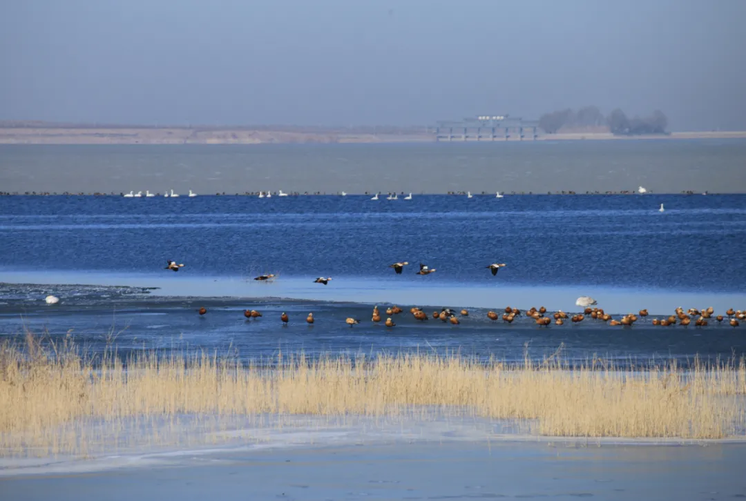 每年冬春季节,在民勤红崖山水库,黑颈鹤、斑头雁、赤麻鸭等野生动物陆续到来,有的在蔚蓝天空中展翅飞舞,有的在清澈的水面逐水嬉戏,每年在红崖山水库越冬的水鸟有80多种2万多只,特别是监测到由日本专家环志放飞的1T46和1T37环志大天鹅已接连6年在红崖山水库越冬,多年未见的国家Ⅰ级保护动物黑鹳、白尾海雕,Ⅱ级保护动物白琵鹭、灰鹤等珍稀鸟类频频出现,给民勤带来了勃勃生机。