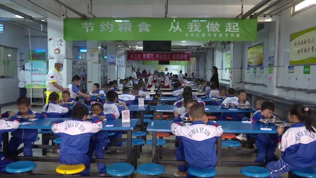 5月13日,记者走进凉州区爱华育新学校,正值学校午餐时间,学生们有序进入食堂,有条不紊地洗手,然后自觉地排列整队,按量按需盛饭,食堂内到处张贴着勤俭节约的宣传标语,于无声中教育学生珍惜粮食。