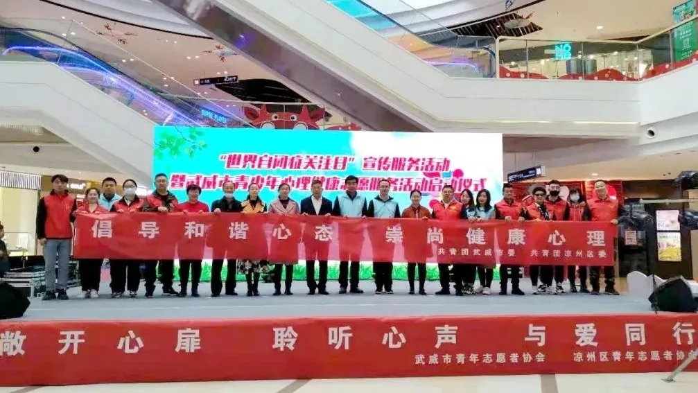 1.4月2日,共青团武威市委组织开展“世界自闭症关注日”宣传服务活动暨武威市青少年心理健康志愿服务活动。进一步加强青少年心理健康教育,关心关爱青少年健康成长,引导青少年形成明确的心理健康意识,正确对待心理健康问题。