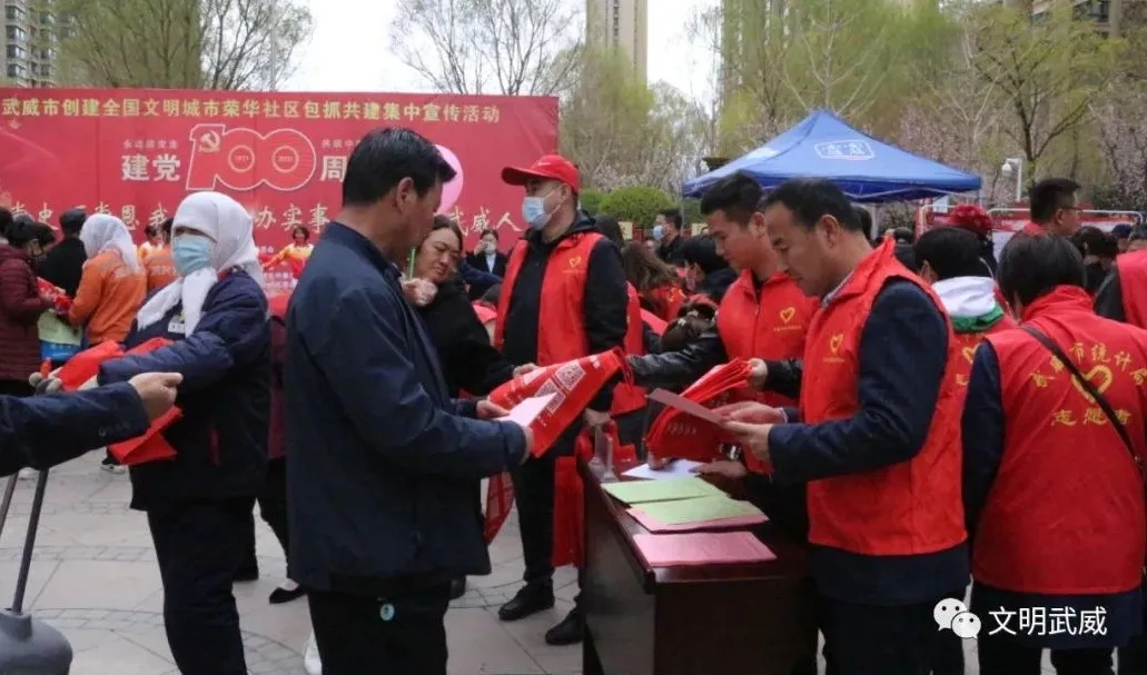 4.4月2日下午,市委政法委组织创建全国文明城市荣华社区市、区两级包抓共建单位在恒大绿洲小区开展“学党史、颂党恩,我为群众办实事,争做文明武威人”集中宣传暨主题党日活动。
