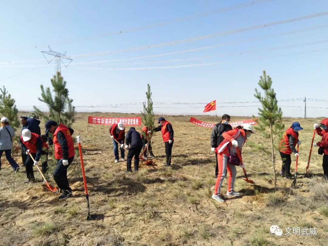8.4月16日,市政协志愿者在古浪县开展省市县政协“携手八步沙 共建政协林”义务植树活动,植树造林,美化环境,保护生态。