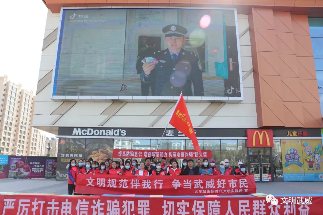 9.4月21日上午,火车站街在万达广场开展“文明规范伴我行,争当武威好市民”志愿服务活动。现场示范、推广“拱手礼”,对防电信诈骗、“文明健康有你有我”、疫情防控等进行现场宣传,倡导居民规范自身言行,自觉遵守交通规则、爱护身边环境,垃圾分类投放,争做文明市民。