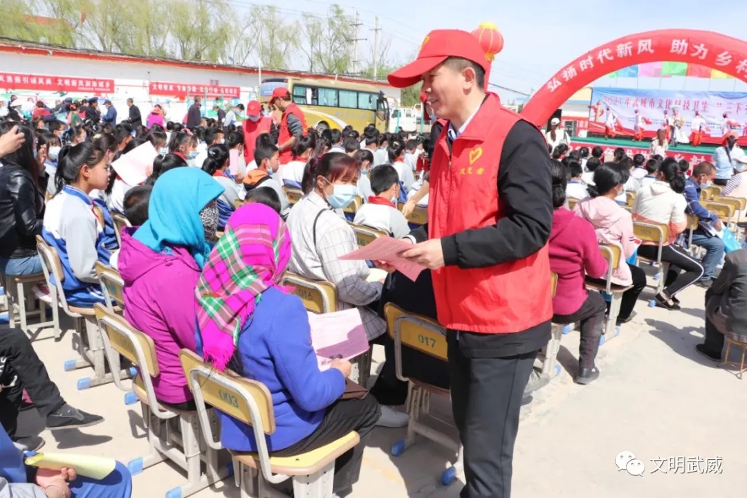 12.4月30日下午,2021年武威市文化科技卫生“三下乡”集中示范活动在凉州区康宁镇举行。启动仪式上,市直有关部门向康宁镇捐赠了图书、体育和生活用品。同时市区各单位的志愿者,还开展了文艺演出、健康咨询、科普进校园、流动博物馆进乡村等系列志愿服务活动。