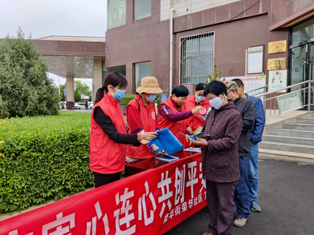 市统计局志愿者在荣华社区开展防震减灾、全国禁烟日、加强民族团结集中宣传志愿服务活动