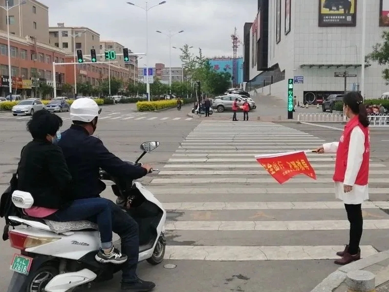 志愿者积极在各交通路口和公交站点开展文明交通劝导和帮扶志愿服务,重点针对非机动车及行人不遵守交通信号灯、横穿马路等不文明交通行为进行劝导,主动搀扶行动不便的老人、儿童过马路。倡导市民遵守交规、文明出行。同时开展车辆乱停乱放整治志愿服务活动,对包抓街道非机动车乱停乱放进行有序摆放,劝导骑乘人员有序停放。