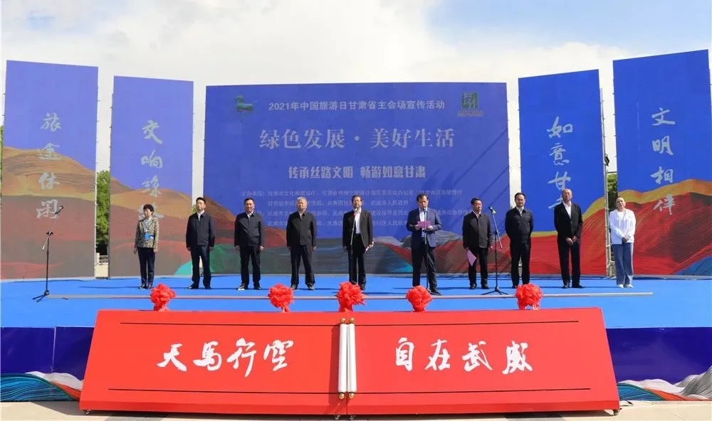 5月19日,以“绿色发展 美好生活——传承丝路文明 畅游如意甘肃”为主题,由省文化和旅游厅、省文明办、省应急管理厅、省市场监督管理局、共青团甘肃省委、武威市人民政府主办的“2021年中国旅游日甘肃省主会场宣传活动”武威雷台景区举行。