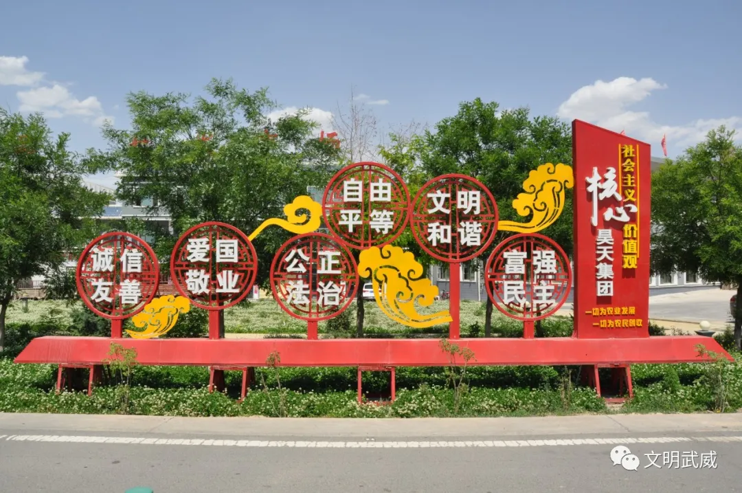 人因文明而美,城因文明而兴。一幅幅风格清新的水墨画、一句句社会主义核心价值观宣传语……以社会主义核心价值观为主题设置的城市绿化人文景观惟妙惟肖、随处可见,已成为武威大街小巷的一道亮丽风景线。“这些设计里融入社会主义核心价值观的文化元素,让人在欣赏景观的同时受到熏陶教育,真的非常好。”退休教师孙玉红说。
