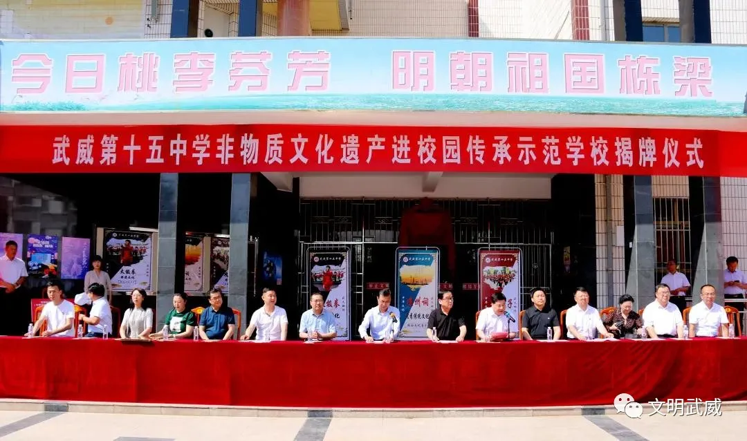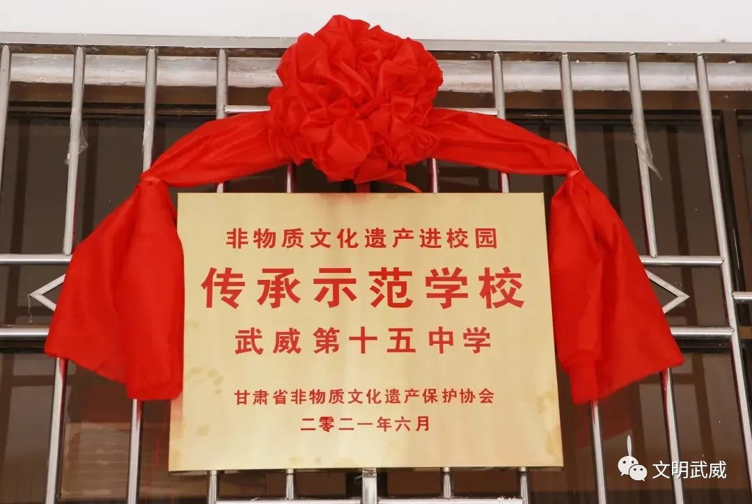 6月9日下午,在文化和自然遗产日到来之际,甘肃省第一所“非物质文化遗产进校园传承示范学校”在武威第十五中学挂牌。