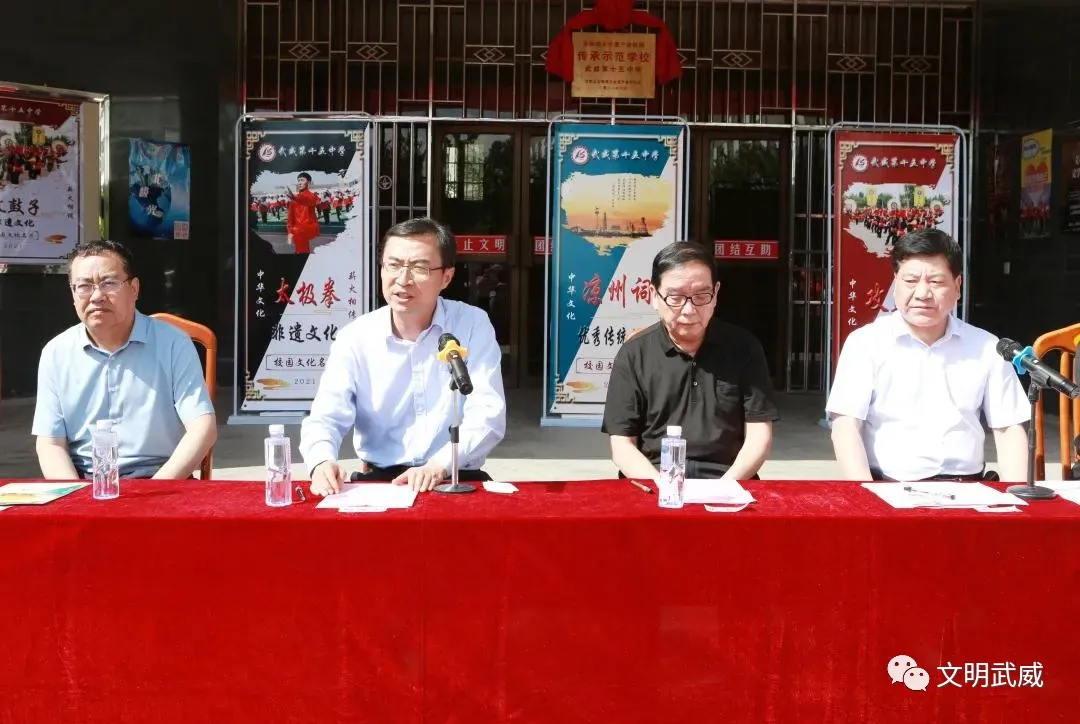 仪式上,莫超、梁朝阳共同为武威第十五中学授牌并揭牌。甘肃非遗保护协会向武威第十五中学捐赠了非遗进校园活动经费。仪式后,还进行了非遗项目及优秀传统文化节目展演。