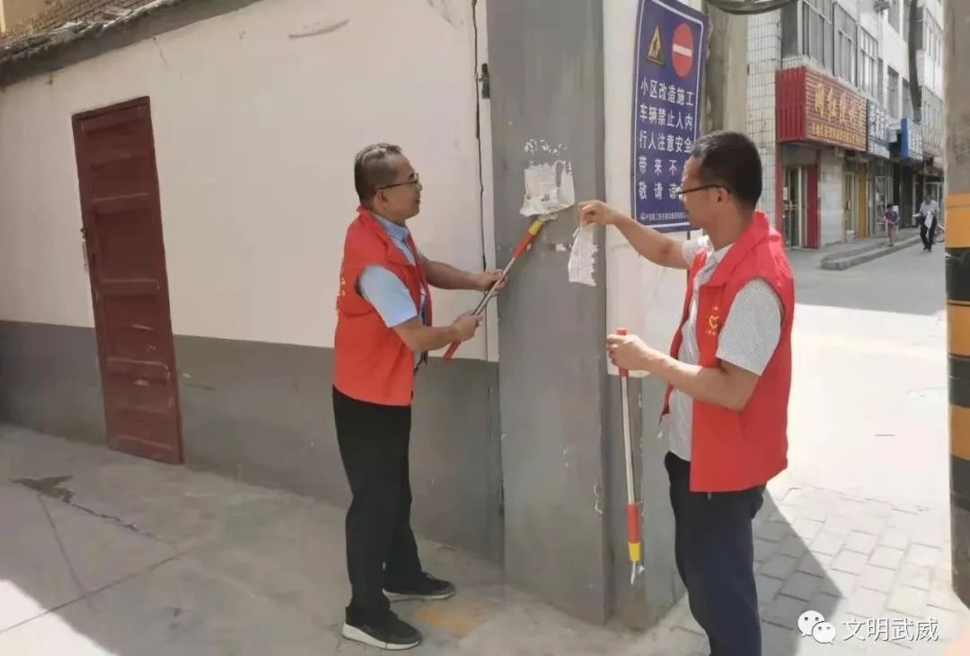 市住建局志愿者在靶场社区开展清理小广告志愿服务活动。