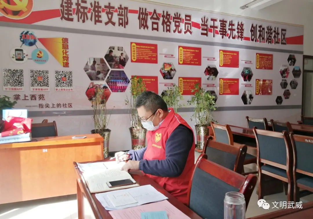 关键时候看担当。“这个小伙子平时就是个热心肠,邻里邻居的大事小事他都乐于帮忙,这关键时候他也是第一个站出来的”。进出小区的居民看到穿着凉州区青年志愿者红马甲的许斌每天值守在小区门口时,纷纷为他竖起了大拇指。在带头参与疫情防控的同时,许斌充分利用和所在小区居民熟络的便利条件,主动为社区分忧,承担起所在小区防控措施普及、聚集人员劝导等工作。一个人的力量有限,但一个人真心志愿服务的影响力是无穷的。在他的影响带动下,先后有多名小区居民加入到了值守队伍,有效缓解了检查点人员力量不足的局面。“我们这个地方始终保持零感染,背后是成千上万的党员干部和志愿者在坚守,不管刮风下雪,看到他们每天24小时坚守在小区门口,我们很安心、很感动、也很钦佩,就想尽自己的一份力量,只要大家一起,就没有打不赢的‘战’。”