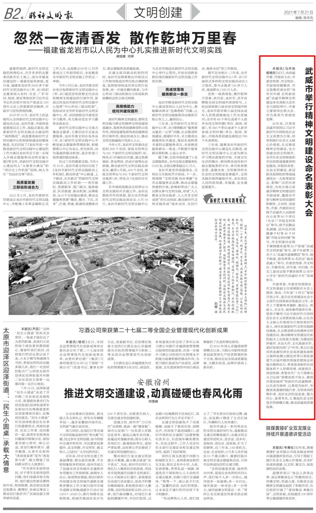 7月21日《精神文明报》刊登