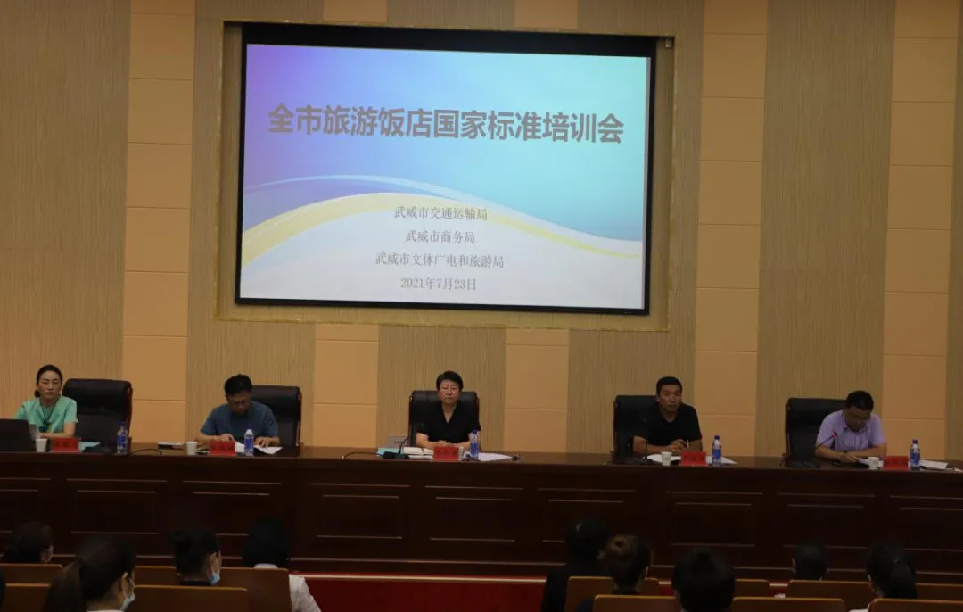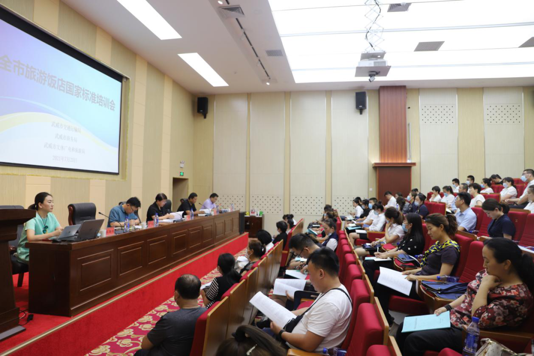 为深入贯彻落实全市文化旅游名市建设大会精神,推动旅游业高质量发展,进一步增强我市宾馆饭店服务人员服务理念,规范服务标准,提高服务技能,提升我市宾馆饭店接待服务整体水平,7月23日,市文体广电旅游局、市商务局、市交通运输局联合组织召开了全市旅游饭店国家标准培训会。