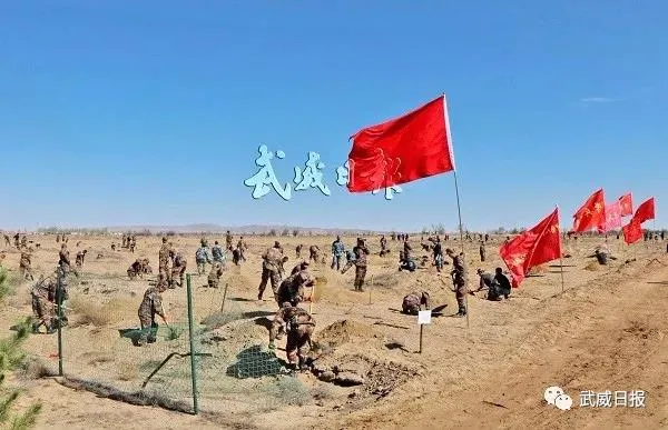 生态建设上:积极参加石羊河流域重点治理和祁连山生态环境整治,参加春季植树和腾格里沙漠边缘红水河两岸生态林工程、邓马营湖生态治理工程、民勤县万亩胡杨林生态工程、甘蒙边界生态大林带建设工程,助力生态大市建设。武威军分区2019年在八步沙林场建设“国防生态林”,投入52万元造林近400亩。多年来,驻武部队先后共出动官兵2000多人次,车辆1000多台次,累计植树造林1500余亩,压沙3万多亩。