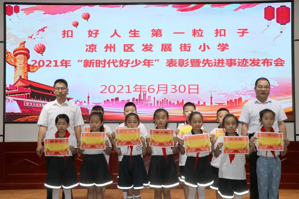为进一步引导青少年“扣好人生第一粒扣子”,近日,凉州区发展街小学举行2021年“新时代好少年”表彰暨先进事迹发布会。