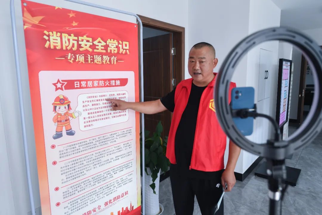 6月22日,杭州市临安区锦南街道锦溪社区党员志愿者进行“安全生产月”主题宣讲并录制视频,准备上传到“e智慧”平台。