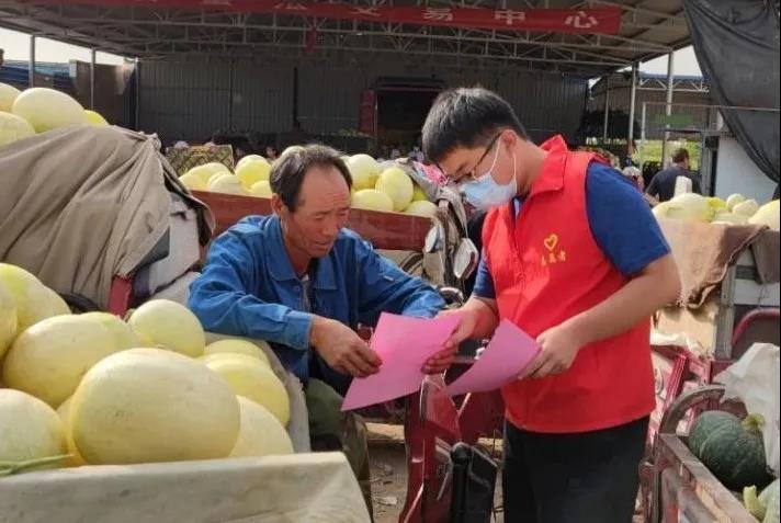 姨,锻炼时,也要戴好口罩,在民勤县生态文化广场,穿着红马甲的志愿者上前劝导正在健身的群众做好个人防护措施,并为其宣讲疫情防控知识。泉山镇瓜果交易市场前来卖瓜的人数较多,卖瓜群众中随处可见红马甲在进行排队秩序维护、查看健康码,宣传疫情防控知识,倡导老百姓在疫情防控关键期不信谣不传谣,为打赢疫情防控阻击战织牢织密第一道防线。