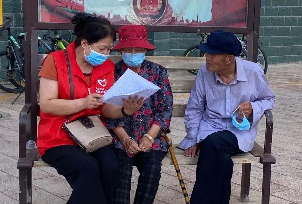 晴日当空,“红马甲”走街串巷,深入居民社区,开展疫情防控知识宣传等志愿服务,为疫情防控保驾护航,巩固疫情防控成果,构建防疫屏障。