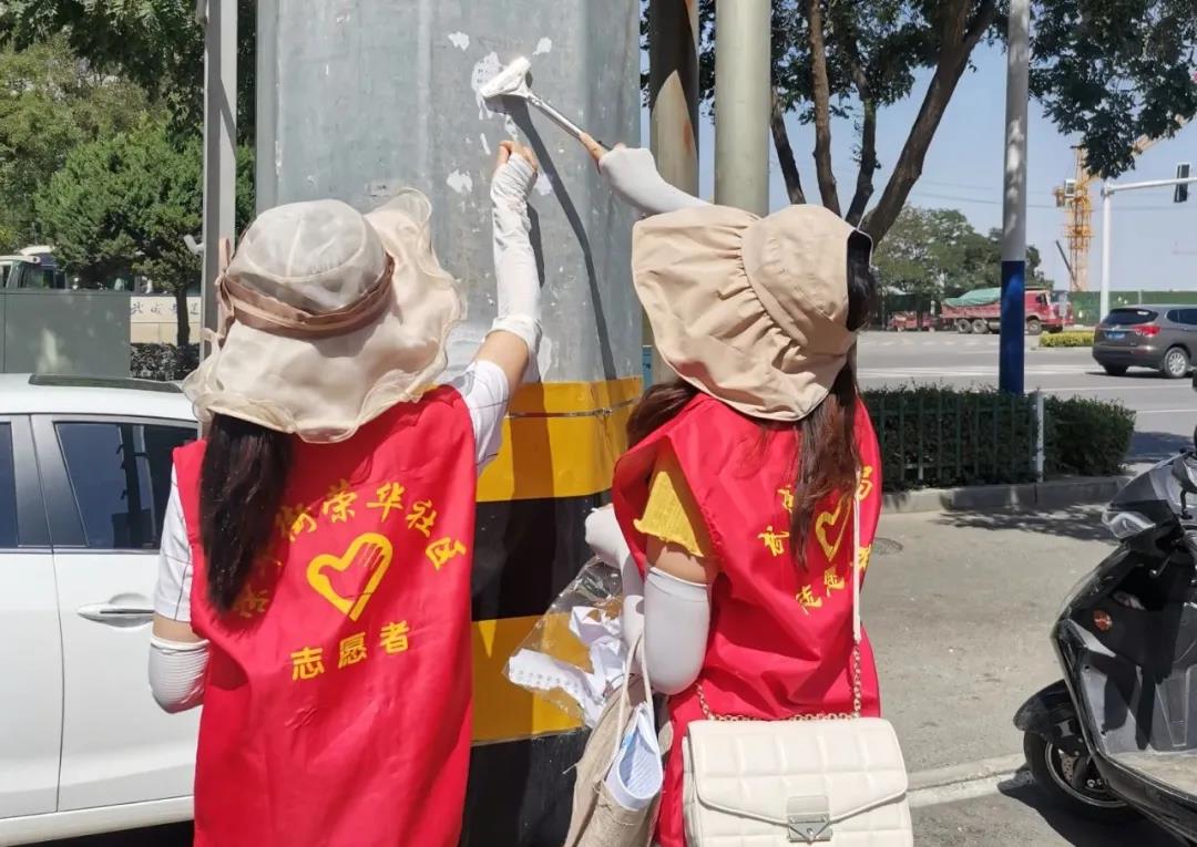 每周五,志愿者发扬不怕苦、不怕累的精神,手持铲子、扫帚、水桶等工具,对绿化带内的垃圾、“牛皮癣”等进行集中清理清洁,开展环境卫生整治、捡拾烟头清理小广告等志愿活动,优化城市市貌,创造一个干净卫生的市容环境。
