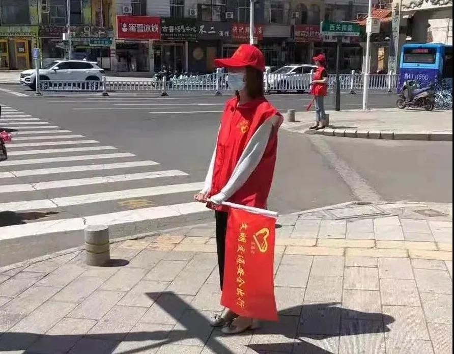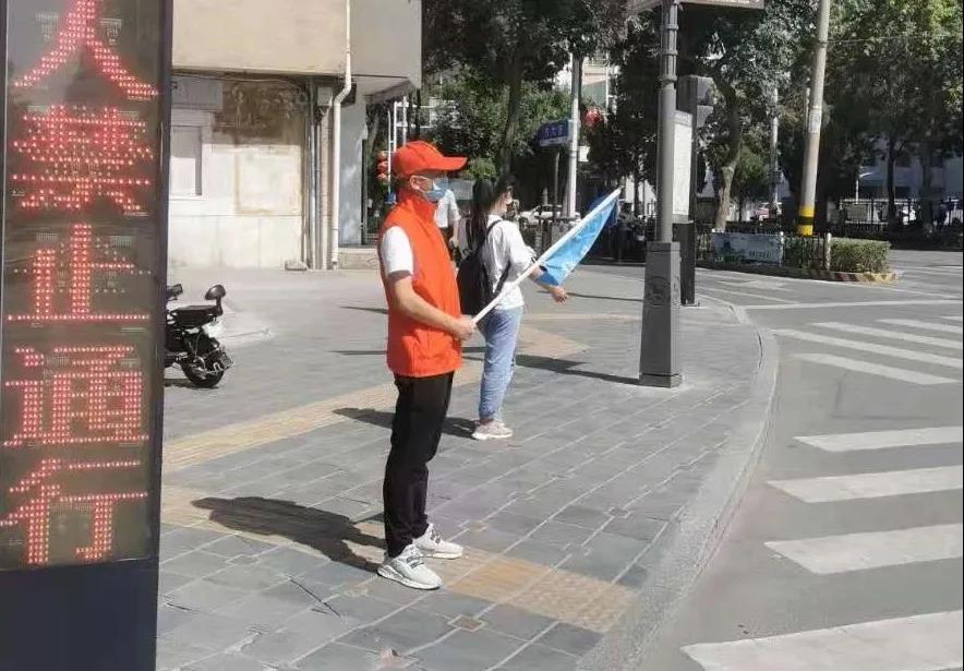 为了给居民营造一个方便出行的良好的公共环境,志愿者引导行人按信号灯行驶,对过往行人闯红灯、不走斑马线等行为进行文明劝导,为市民撑起安全的保护伞,给这个城市铺就一条条安全路。