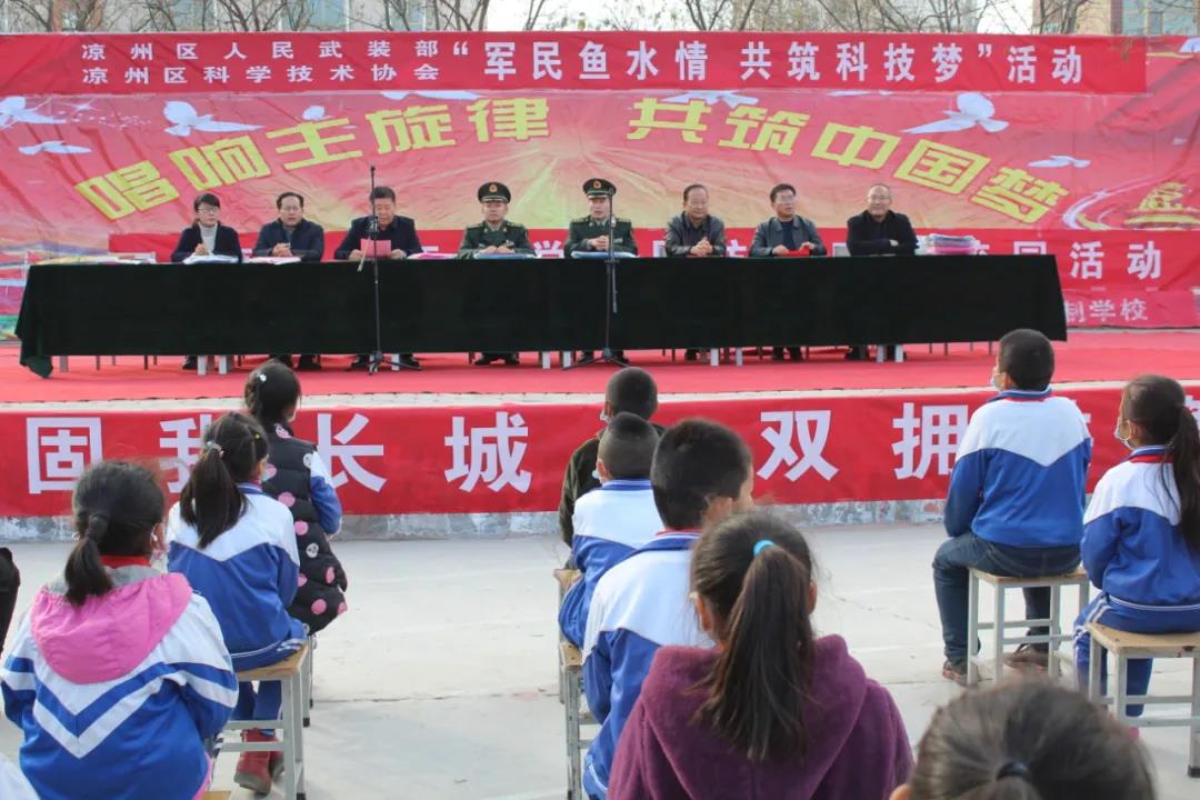 在凉州区高坝镇台庄小学,孩子们听着来自部队的校外辅导员所讲的国防教育课,参军入伍保家卫国的理想信念像一颗颗种子在孩子们的心里生根发芽。
