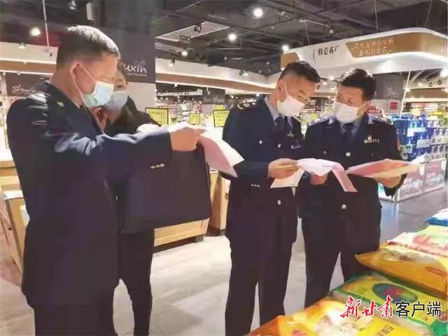省市场监管部门工作人员检查防疫用品以及粮油等生活必需品销售价格。