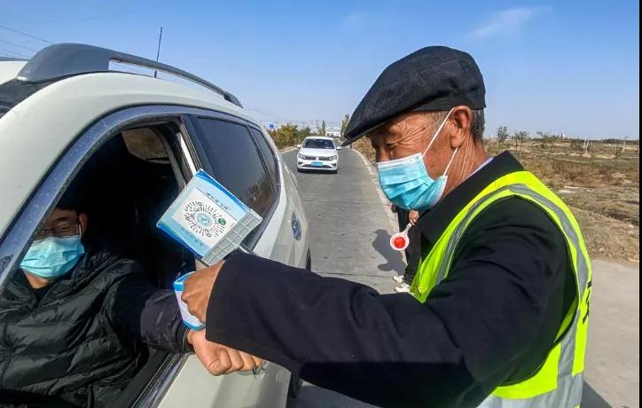 全国劳动模范、中国好人、八步沙林场场长郭万刚在一线防控点值守。