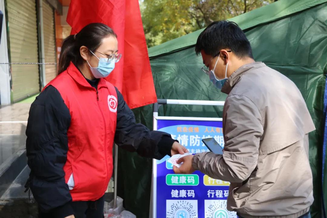 在各小区门口,各种颜色的应急帐篷和红色的党旗,成为这段特殊时期最亮眼的风景线。全市在职党员干部下沉社区参与疫情防控工作,主动与社区管理人员对接,积极申领工作任务,迅速投身疫情防控值守中,承担起了检测点执勤、现场秩序维护、健康码查验等繁重工作。他们与社区工作人员一起“钉”在各个小区门口,以坚强的组织保障形成快速反应调集机制,共同筑起了整个城市疫情防控的“铜墙铁壁”,有力保障了全市人民群众生命安全和身体健康。