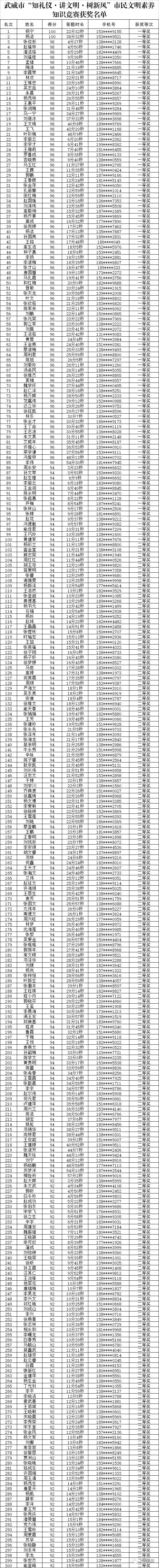 武威市“知礼仪、讲文明、树新风”市民文明素养知识竞赛获奖名单