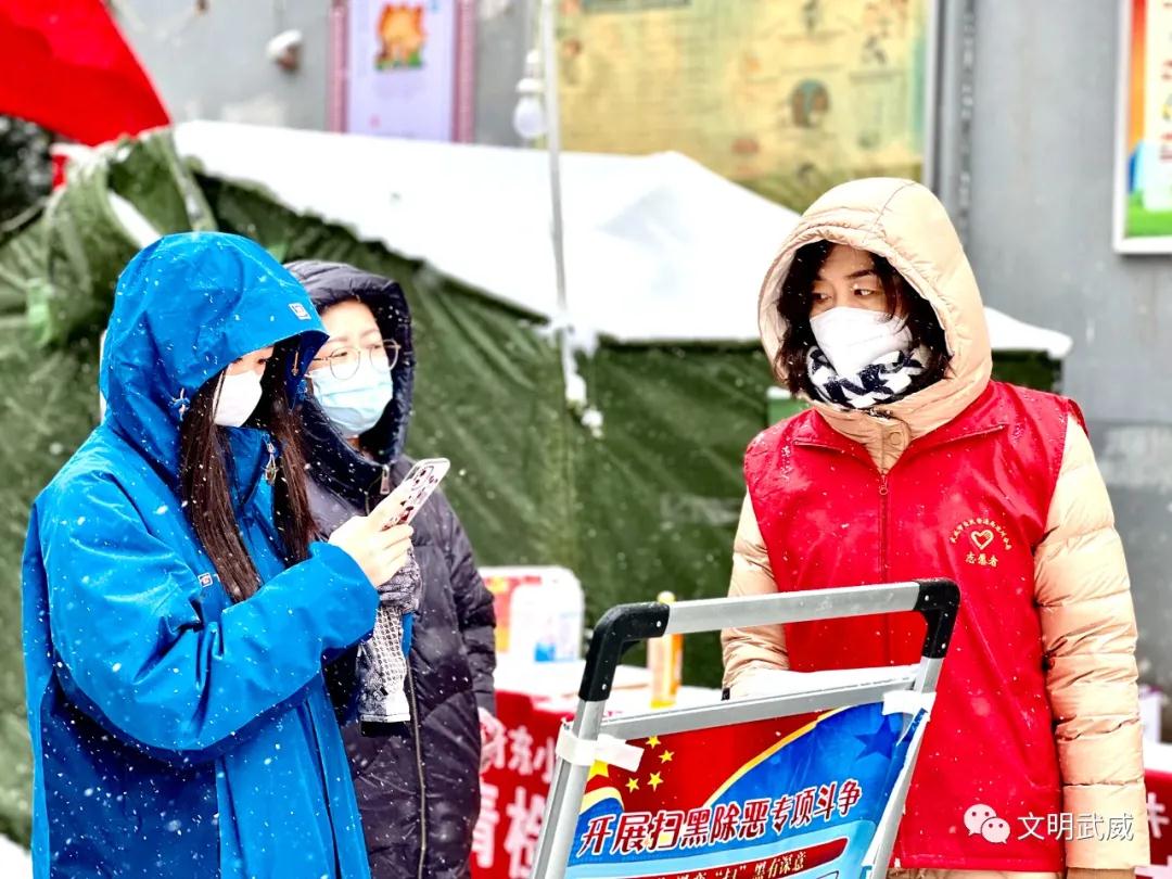 飞雪飘飘凛冬至,银装素裹竞妖娆。11月6日,武威迎来了第一场雪,城市街道上、小区内白雪皑皑,分外迷人。大雪考验着我们对疫情防控的信心和决心。看!那一抹抹志愿红依然奋战在疫线,他们用行动表达铮铮誓言,诠释共产党员的初心使命。