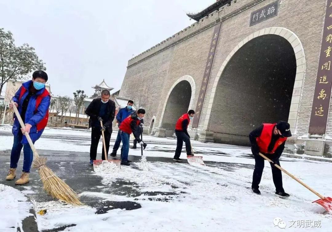 这场大雪在美化环境、净化空气的同时,也给我们的日常生活带来了诸多不便。为保障人们的出行安全和环境整洁,武威市各部门单位积极发挥模范带头作用,组织志愿者及时清扫门前、道路积雪。
