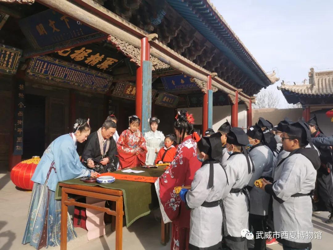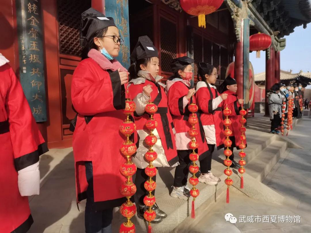 武威文庙将挂灯笼、写春联与儒家传统文化有机结合起来,着汉服、拜先师、习古礼、颂经典、讲传承、送虎,既有成人礼,又有开笔礼,乐舞相和、雅音绕梁,将简简单单的挂灯笼写春联赋于浓郁的传统文化仪式感,红红火火过大年,使文庙春节的年味平添了不一样的浓醇。