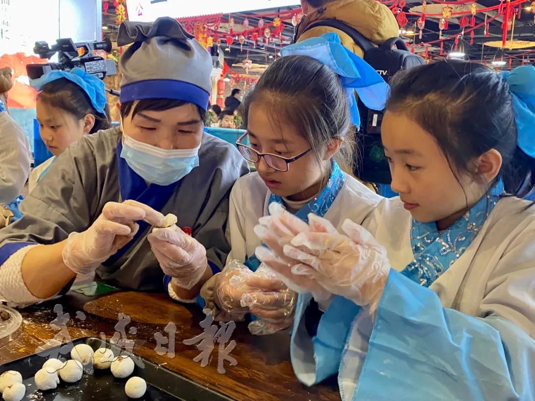 揉面、切馅、填料、捏圆……在凉州老街,十几名小朋友在面点师的带领下学做汤圆迎元宵。“看,我捏的汤圆比你的圆!”张一帆小朋友拿起刚刚包好的汤圆向邻座展示。听到他的“挑衅”,其他孩子也不甘示弱,拿出自己的汤圆一较高下。