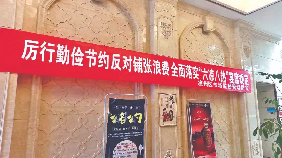 “所有餐饮经营单位,宴席菜品数量每桌一律不超过‘六凉八热’,积极争做抵制浪费、爱粮节粮的践行者,健康餐饮、文明生活的倡导者,传承美德、弘扬新风的推动者。”凉州区餐饮行业协会发出倡议。