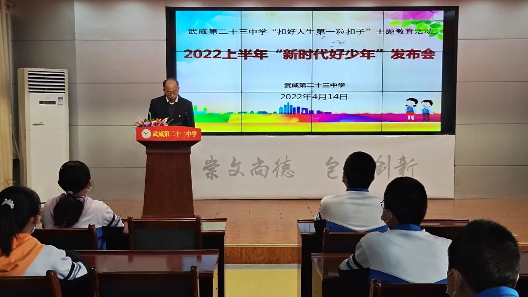 4月14日上午,武威第二十三中学举行了2022年上半年“新时代好少年”发布会。