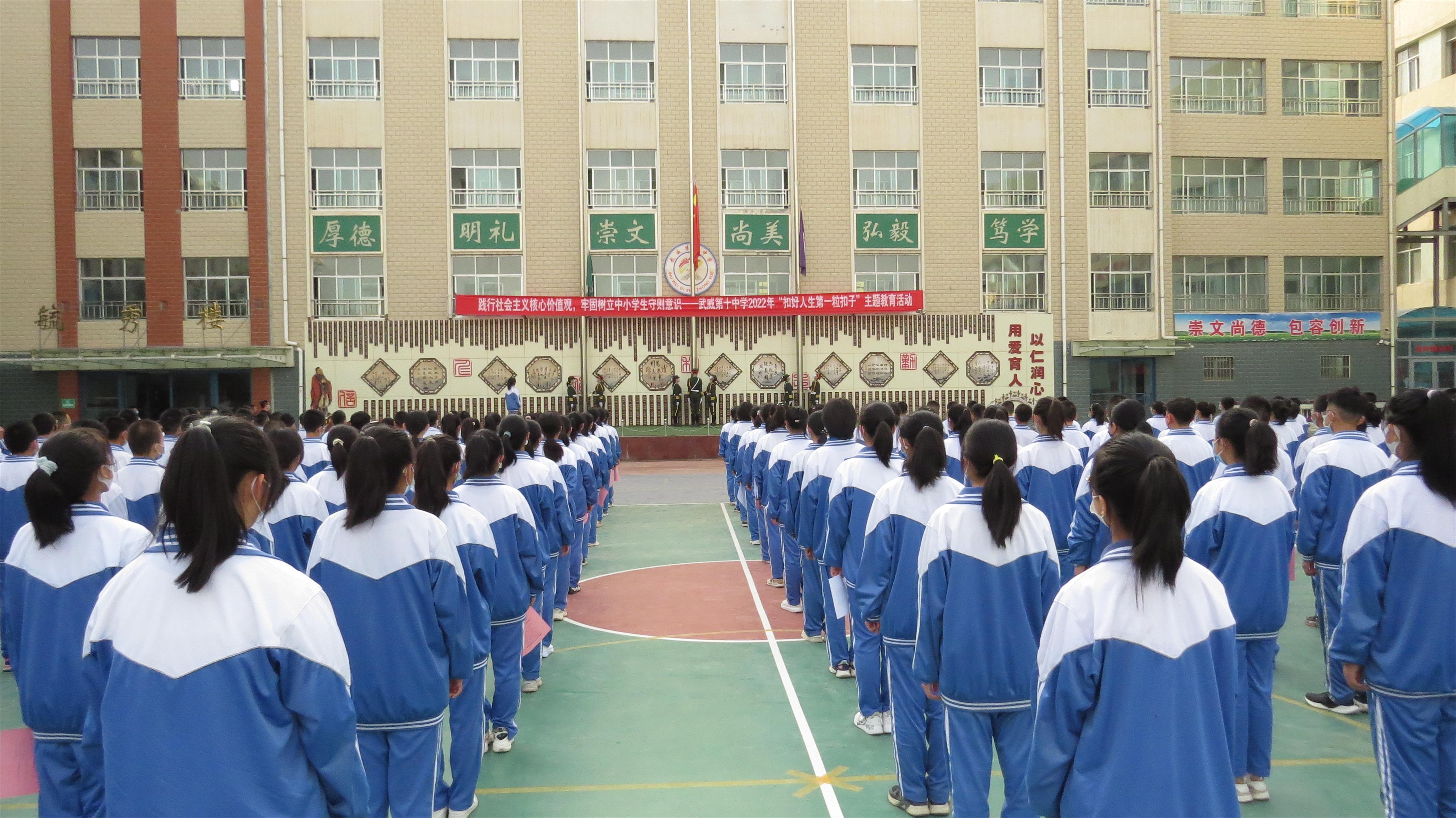 武威第十中学利用升旗仪式,组织开展了“践行社会主义核心价值观 牢固树立中小学生守则意识”主题教育活动,学生代表在国旗下演讲中发出倡议,作为新时代的中学生不仅要会读会背《中小学生守则》,更要铭记于心,时刻以守则规范自我行为,助力健康成长。