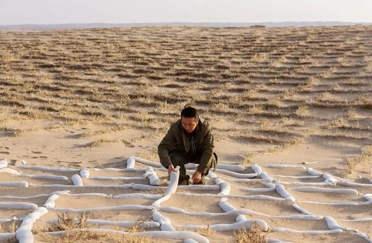 80后小伙马俊河正带领志愿者和群众在麦草方格内栽种梭梭。“从2007年开始,我发起拯救民勤环保志愿者绿洲行动,办起‘拯救民勤网’,开办个人博客‘天下民勤网’,真实记录和展现民勤生态环境恶化和荒漠化治理进程,通过互联网组织全国各地的志愿者在民勤压沙植树。截至2021年底,已面向社会募集资金660万元,种植梭梭等各类林木5万余亩。全国150多家媒体、企业、基金会等机构在此建了生态林。”马俊河介绍说。