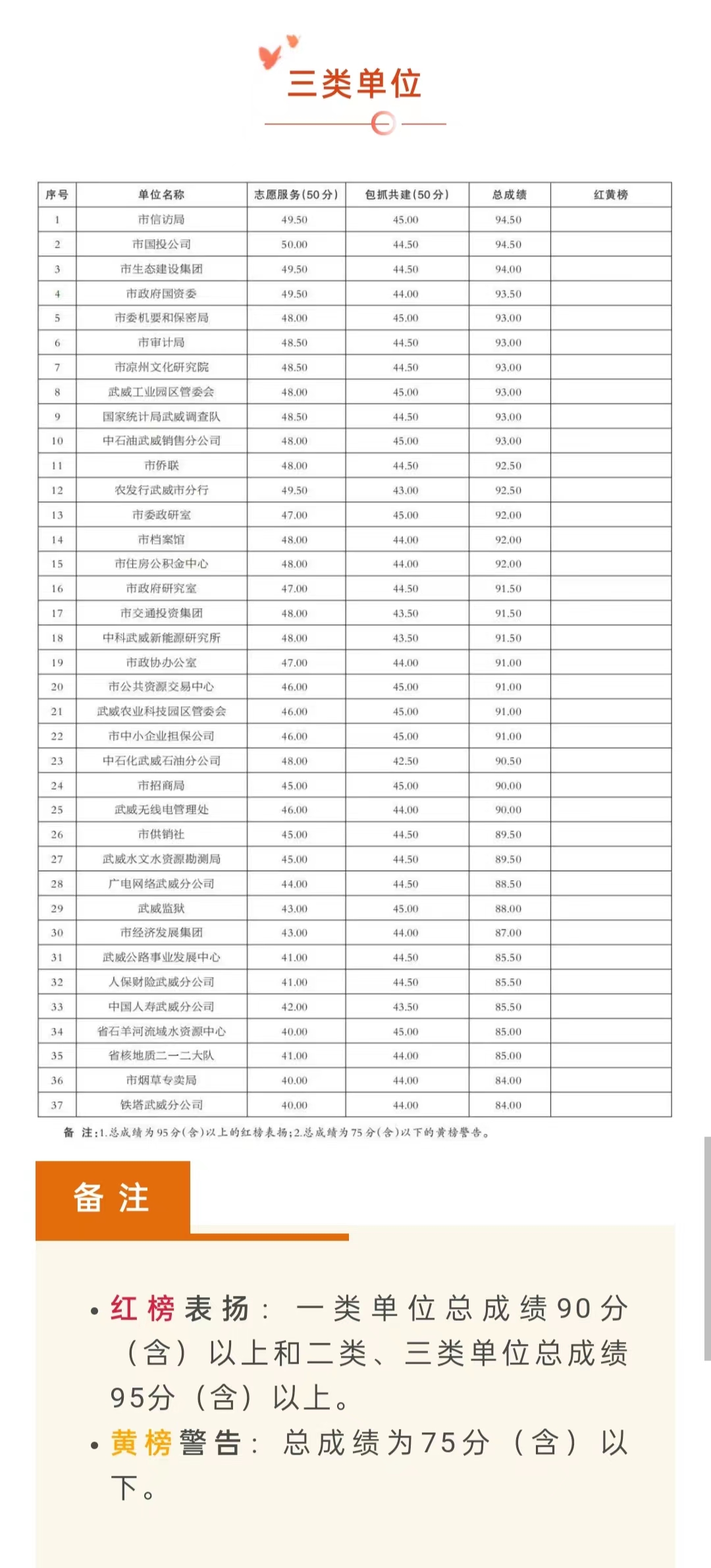 武威市创建第七届全国文明城市工作2022年三季度日常考评结果公示