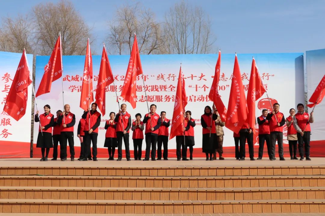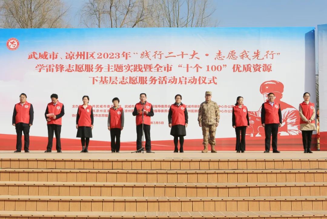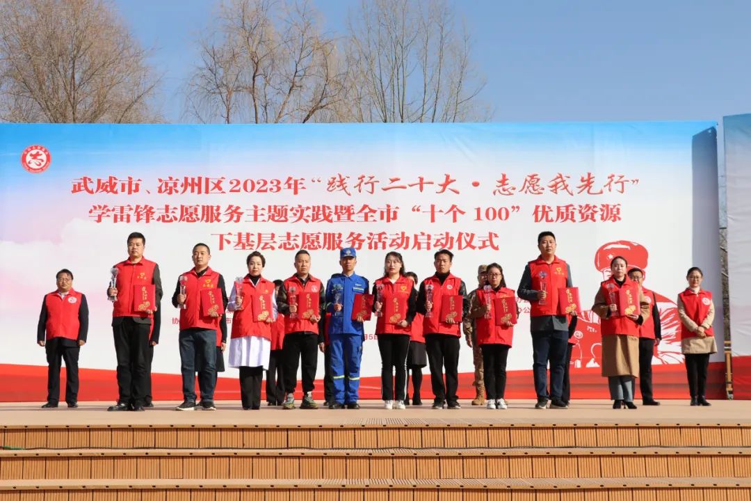 为深入学习宣传贯彻党的二十大精神,大力弘扬雷锋精神,激励更多的人参与志愿服务,推动市级优质资源下沉基层,努力营造“我为人人 人人为我”的社会氛围。3月5日上午,由市、区宣传部、文明办、文明实践办主办,市志愿服务联合会协办的武威市、凉州区2023年“践行二十大 志愿我先行”学雷锋志愿服务主题实践暨全市“十个100”优质资源下基层志愿服务活动启动仪式在凉州区植物园举办。