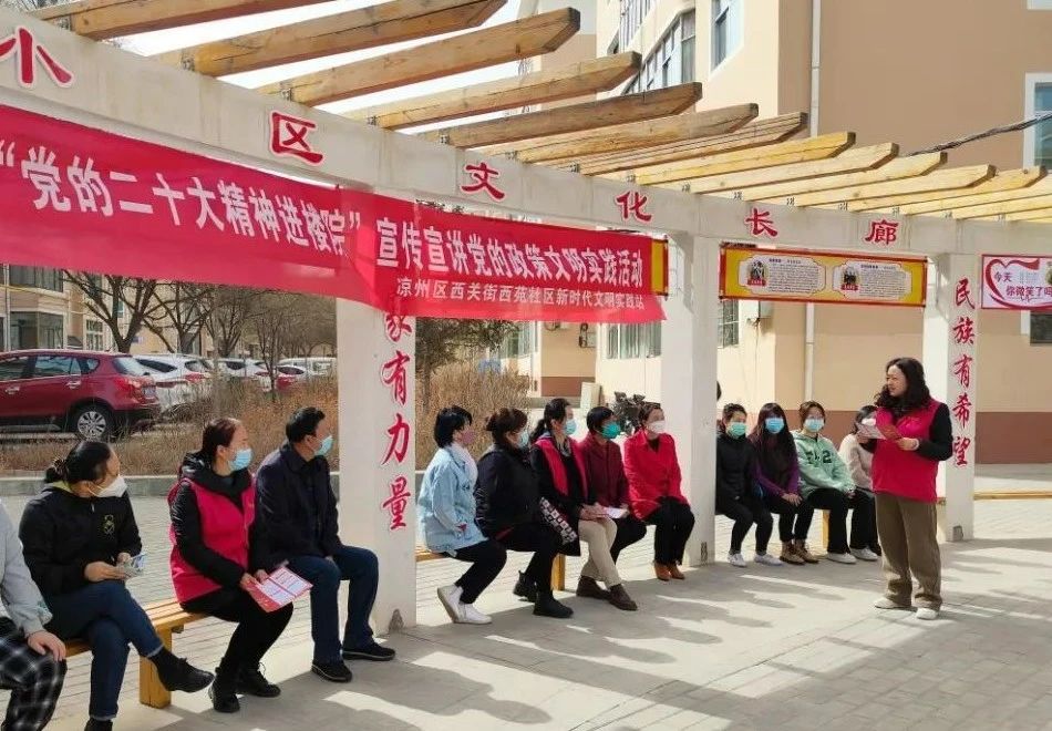 今年以来,凉州区深入学习贯彻党的二十大精神,全面贯彻落实习近平总书记关于新时代文明实践中心建设的重要指示要求,按照中央和省委、市委总体部署,紧扣“14536”总要求,结合“三抓三促”行动,进一步拓展新时代文明实践中心(所、站)建设,常态长效开展文明实践志愿服务活动,有效打通宣传群众、教育群众、关心群众、服务群众“最后一公里”,以“零距离”服务暖人心、聚民心、筑同心,让文明实践志愿服务惠及更多群众。