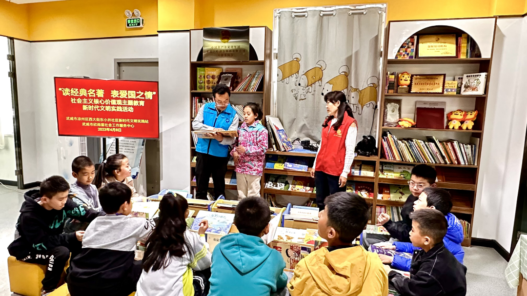 4月8日上午,武威市凉州区西大街东小井社区新时代文明实践站开展“读经典名著·表爱国之情”社会主义核心价值观主题教育文明实践活动。